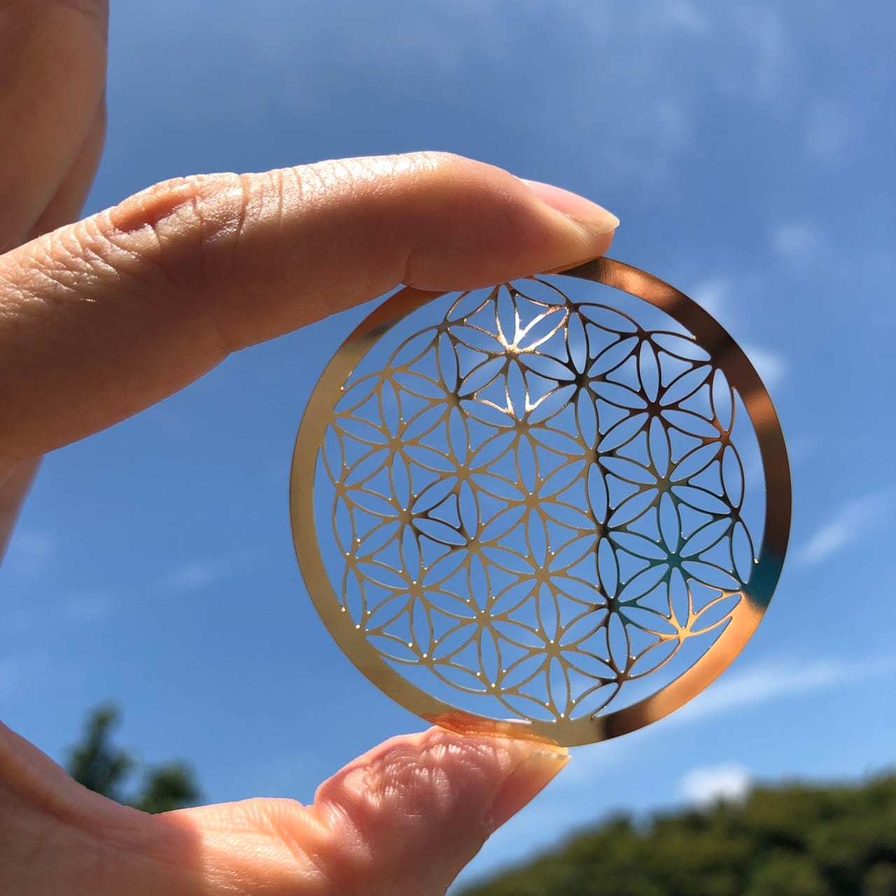 日本では狛犬が手にしている珠の模様に描かれていたり、また麻の葉紋様も・・フラワーオブライフは様々な意味をもった図形の集まり。古代よりサークルに神と繋がる特別な意味を見出し、円には神秘の力が宿る、と。
