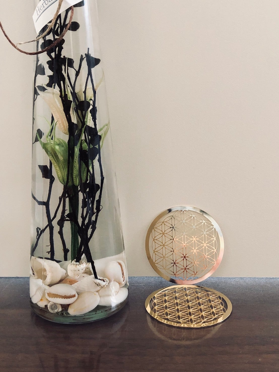 古代、人々は幾何学的な模様の中に生命・自然の神秘を見いだしたり、神秘主義者やシャーマン、また哲学者を魅了し、芸術家であり科学者でもあったレオナルド・ダ・ヴィンチの作品にも取り入れられています。創造性と科学を追い求めた彼にとっても魅力的なものだったのです。つまり、種子→樹木→花→果実となり、果実は種子を残し、また種子→樹木→花→果実という生命の成長サイクルに意味を見出したと言われています。